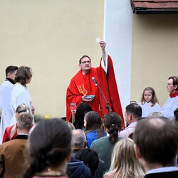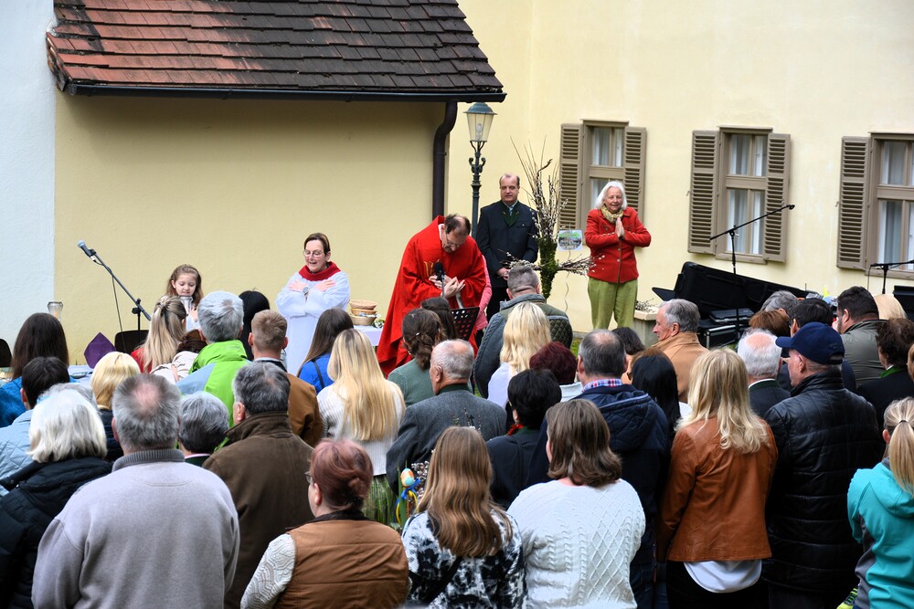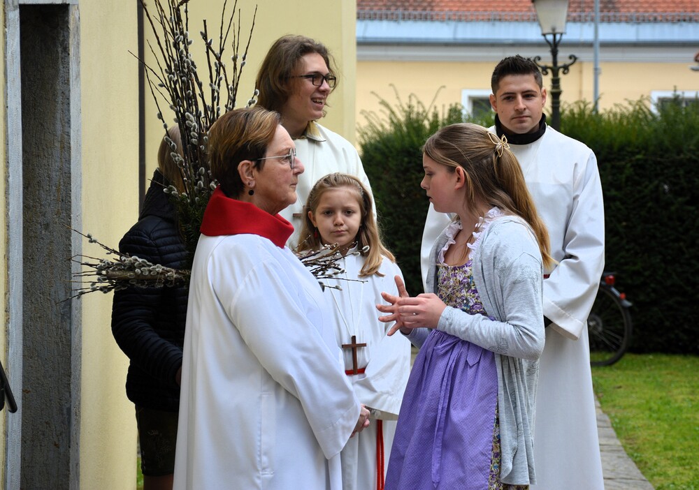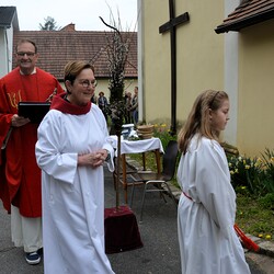 Palmweihe mit Vikar Gerhard Hatzmann am Kirchplatz