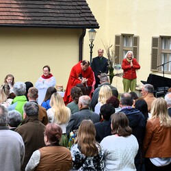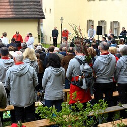 "Kommt herein, kommt herein. Der Himmel soll heut offen sein, für alle Menschen Groß und Klein, kommt alle herein!“ So singen die Kinder des TOKI (Pfarrkindergarten Tobelbad) zu Beginn des Gottesdienstes am Palmsonntag. Viele haben das gehört und sind gekommen. Voran die Jungscharkinder mit ihrem Palmbuschenkreuz, das sie in der Jungscharstunde gebunden haben. Aus Voitsberg war eine große Wandergruppe da und natürlich viele aus dem Seelsorgeraum. Vikar Gerhard Hatzmann erreicht alle, schon beim Kreuzzeichen hat er die Aufmerksamkeit der Kleinen und Großen, wenn er spricht: "Ich denke an dich, ich erzähle von dir, ich spüre du bist bei mir." Beim Evangelium berichtet er von Jesus, wie er mit dem Esel in Jerusalem einzieht, wie ein König – aber wie ein König der Liebe für uns Menschen. Peter Preitler mit seiner Gruppe hat die Messe musikalisch gestaltet und das TOKI Team unterstützt. Im Anschluss gab es eine Agape und den Ostermarkt des Generationentreffs, von Alexandra Deutsch liebevoll vorbereitet. DANKE an alle für dieses segensreiche Fest. Margret Hofmann, Pastorales Pfarrteam Liturgie und Öffentlichkeitsarbeit