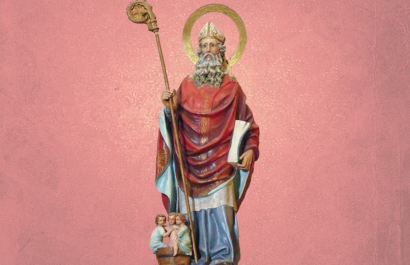 „Was wird jetzt gefeiert? Nikolaus hat heute Namenstag, er war ein Bischof, deshalb hat er Bischofskleidung an. Wie sieht die aus? Ein weißes Untergewand, das heißt Albe; ein roter Mantel oder Umhang; eine Bischofsmütze, die nennt man Mitra; ein Hirtenstab oder Bischofsstab. Er war ein Jesusfreund, deshalb ist auf seinem Gewand ein Kreuz oder er hat ein Kreuz umgehängt. So wie Jesus hat er viel Gutes getan.“